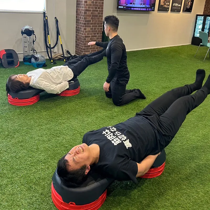 「遊ぶように鍛える®」ユーモア溢れるセッション は「飽きさせない」トレーニングを重視しています。トレーナー全員が自己研鑽を積み、ハイレベルな研修をクリアした精鋭達によって、毎回新鮮な刺激を身体に感じることができます。